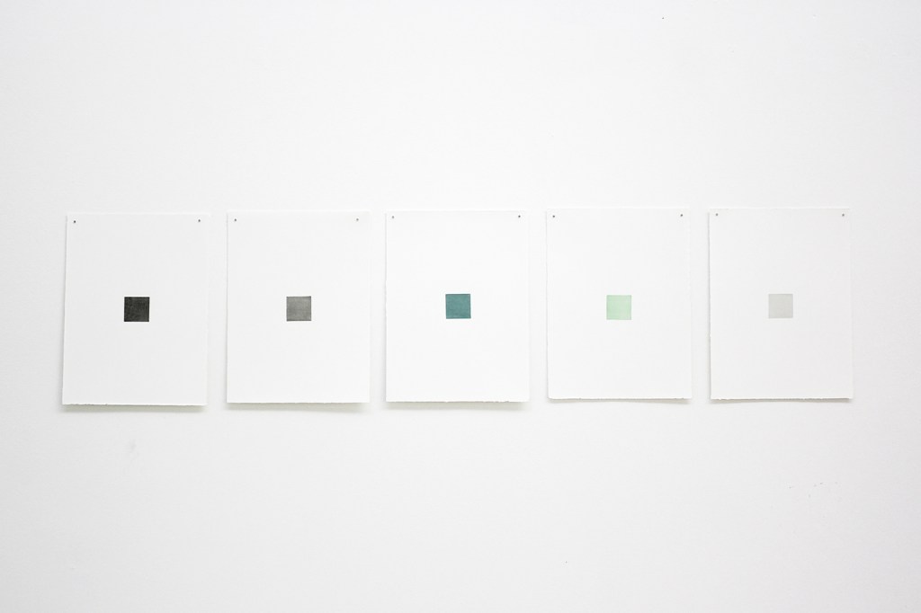 Mixed with solvents and oils, the pigments are then used to create a series of unique intaglio prints, fixing them to another page and in a different context of understanding. Each sanded page of the Atlas corresponds to a print. It is an abstraction of the original content of the Atlas in a series of colour swatches. The simplicity of the monochrome swatches reconfigures the World previously illustrated in the Atlas: it opens up the interpretation of these colours to a new potential. The resulting shades are muted and powdery, reminding us of the origin of the pigments and the process by which they were created. These colours are not pure: paper pulp is attached to them. In Colour Atlas of the World, the cartographic specificity of the map is converted into the poetic ambivalence of a work of art.